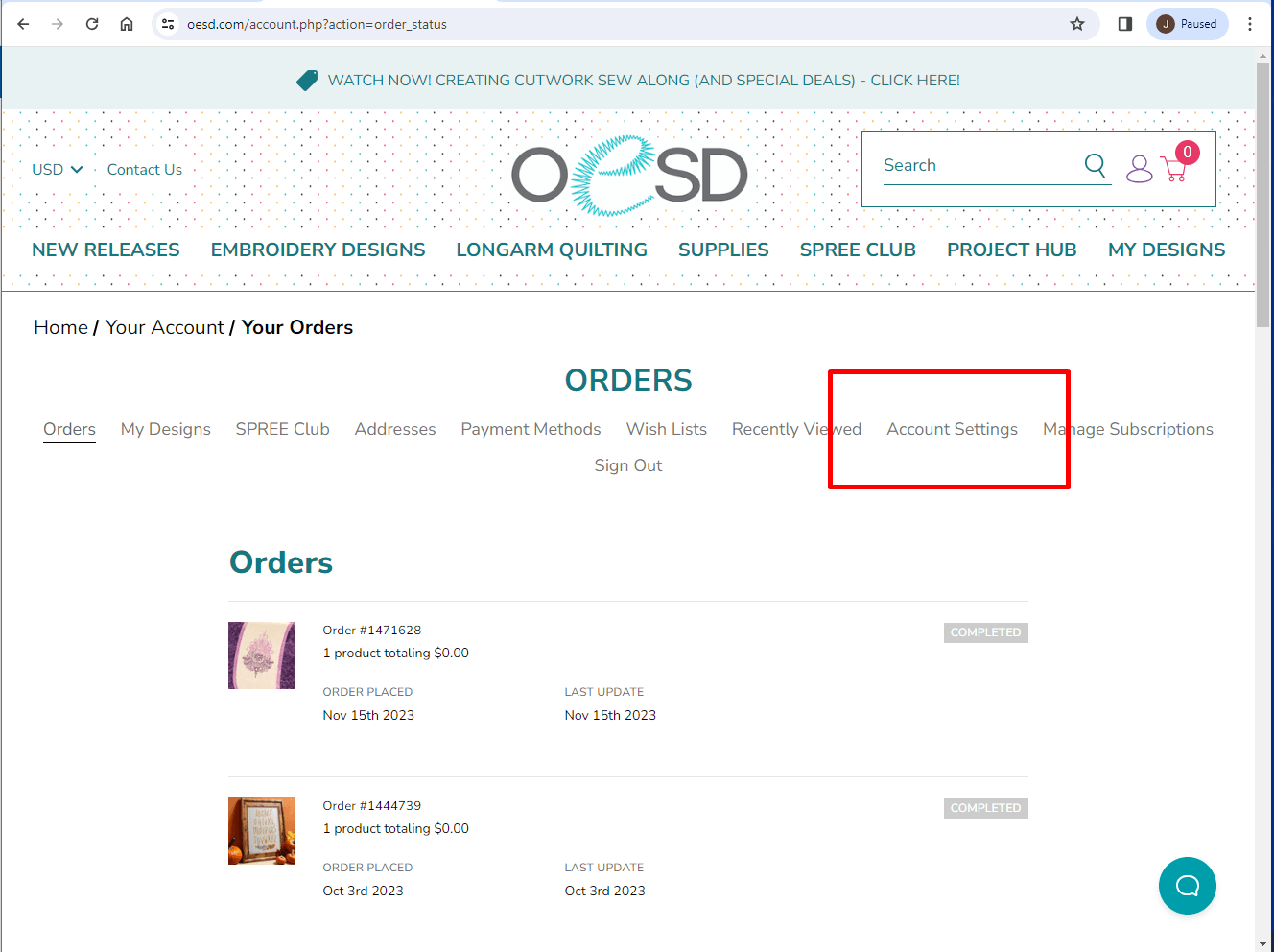 Go to https://oesd.com/ and log into your account. Once logged in, click on the Person Icon in the upper right hand corner of the page. This will direct you to your account pages.